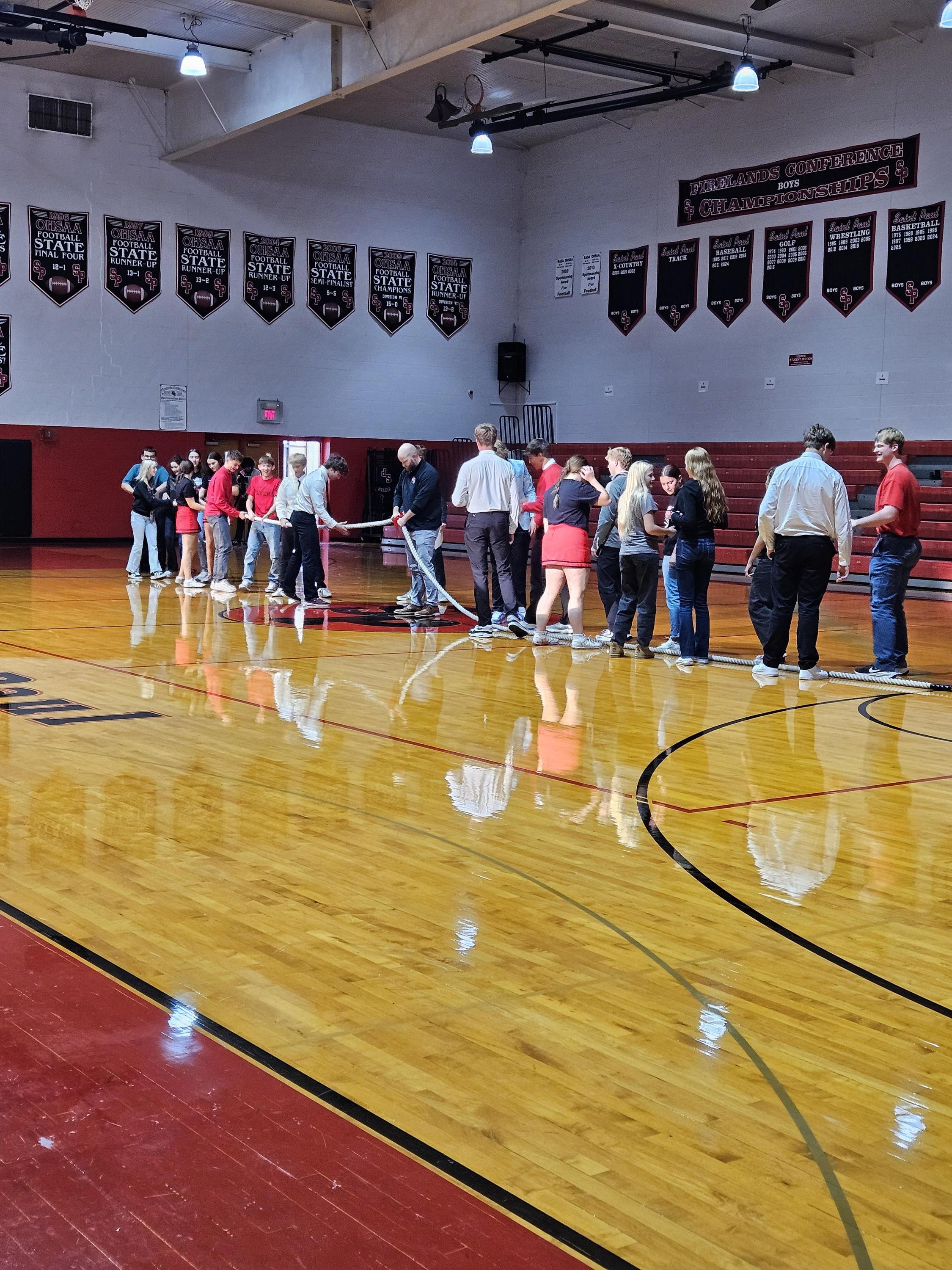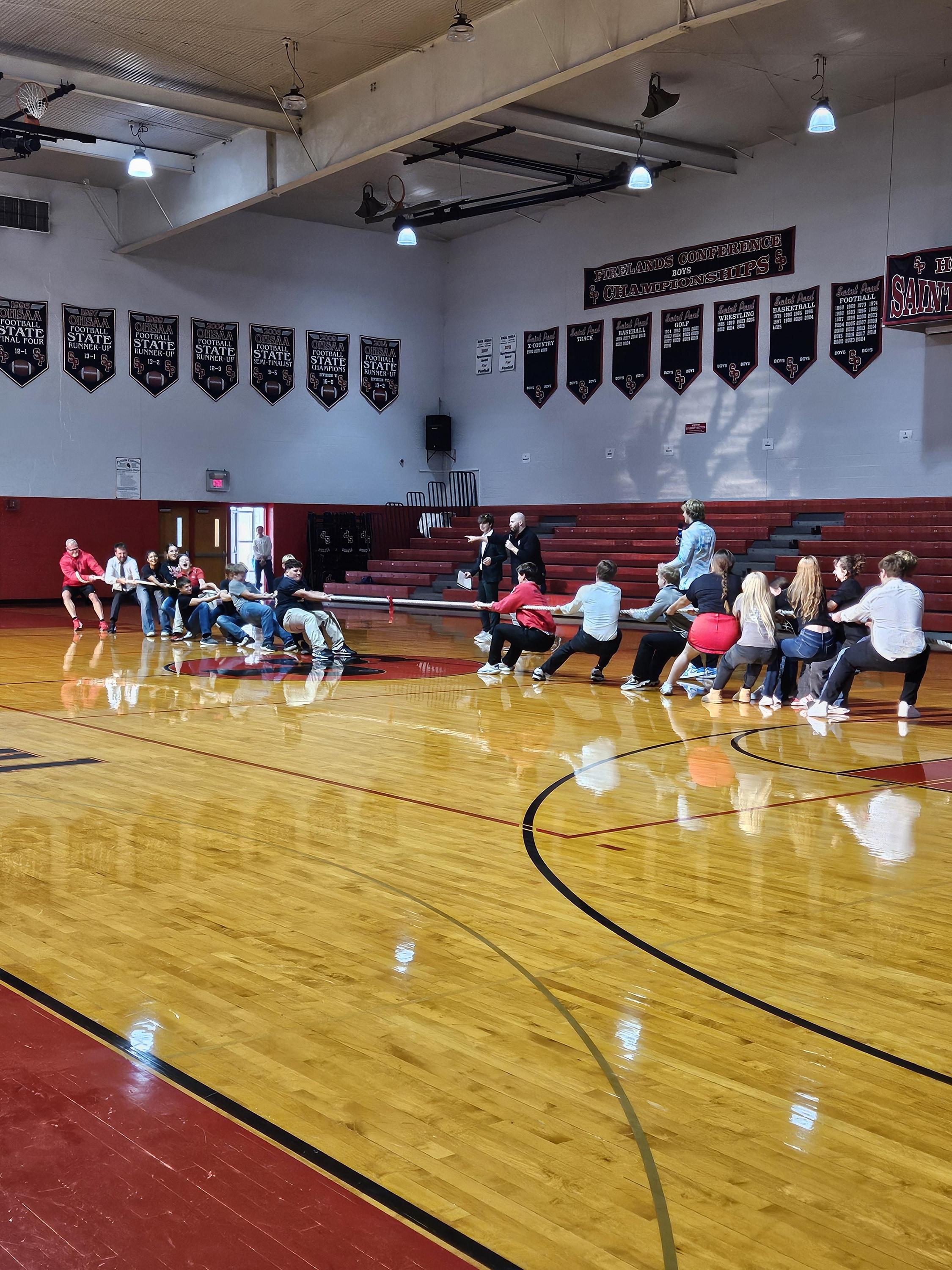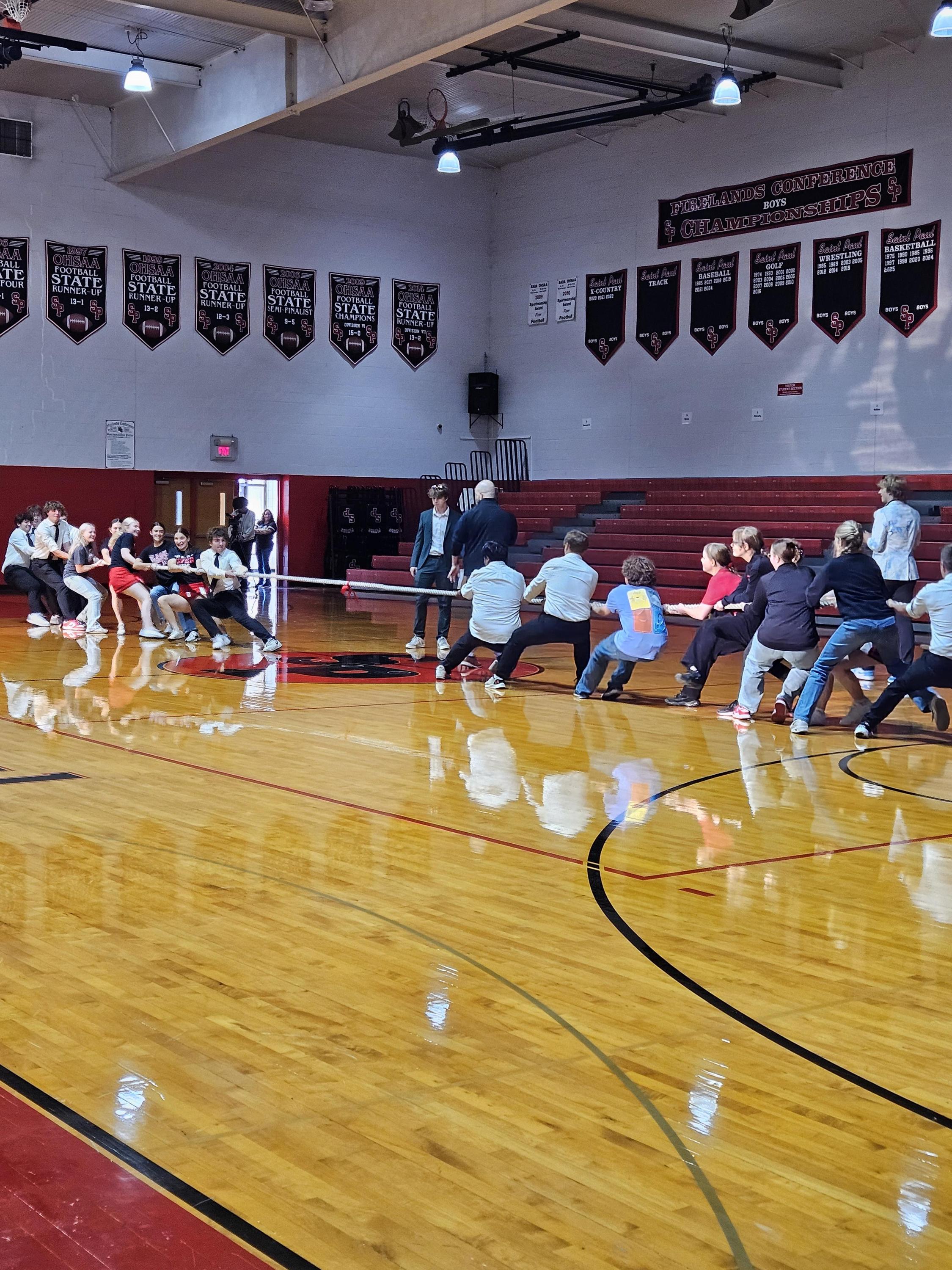 Friday’s Pep Rally was full of energy and Flyer spirit as the high school fall teams were introduced. The crowd went wild during the Tug-of-War showdown, where the 8th graders pulled off an epic victory — thanks to their secret weapons, Mr. Livengood and Mr. Hainline!