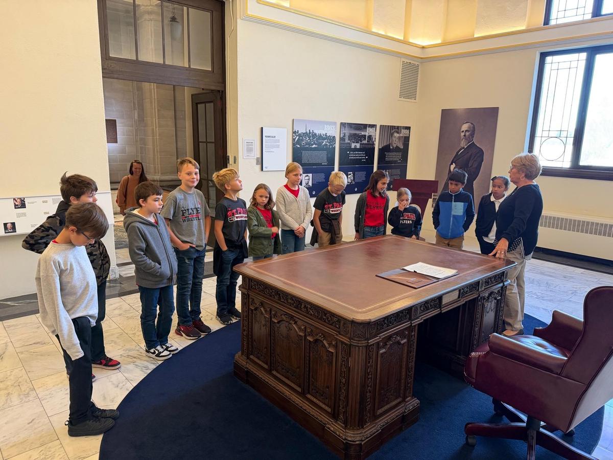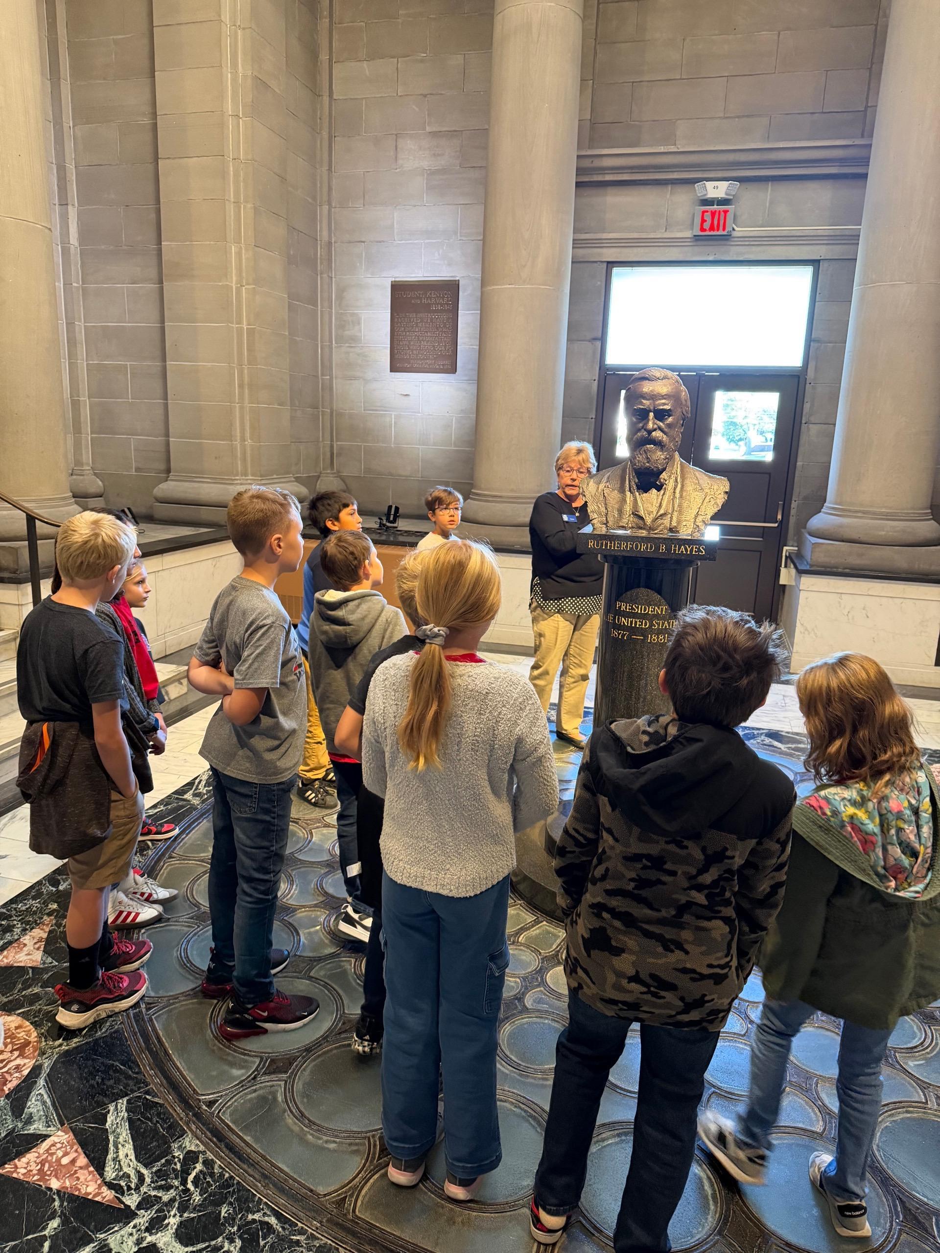 The fourth grade visited the Rutherford B. Hayes Presidential Museum and residence, exploring both the historic home and the beautiful grounds of Spiegel Grove. As part of their Social Studies focus on Ohio history, this field trip offered an exciting opportunity to see firsthand how the Hayes family lived—both at Spiegel Grove and during their time in the White House.