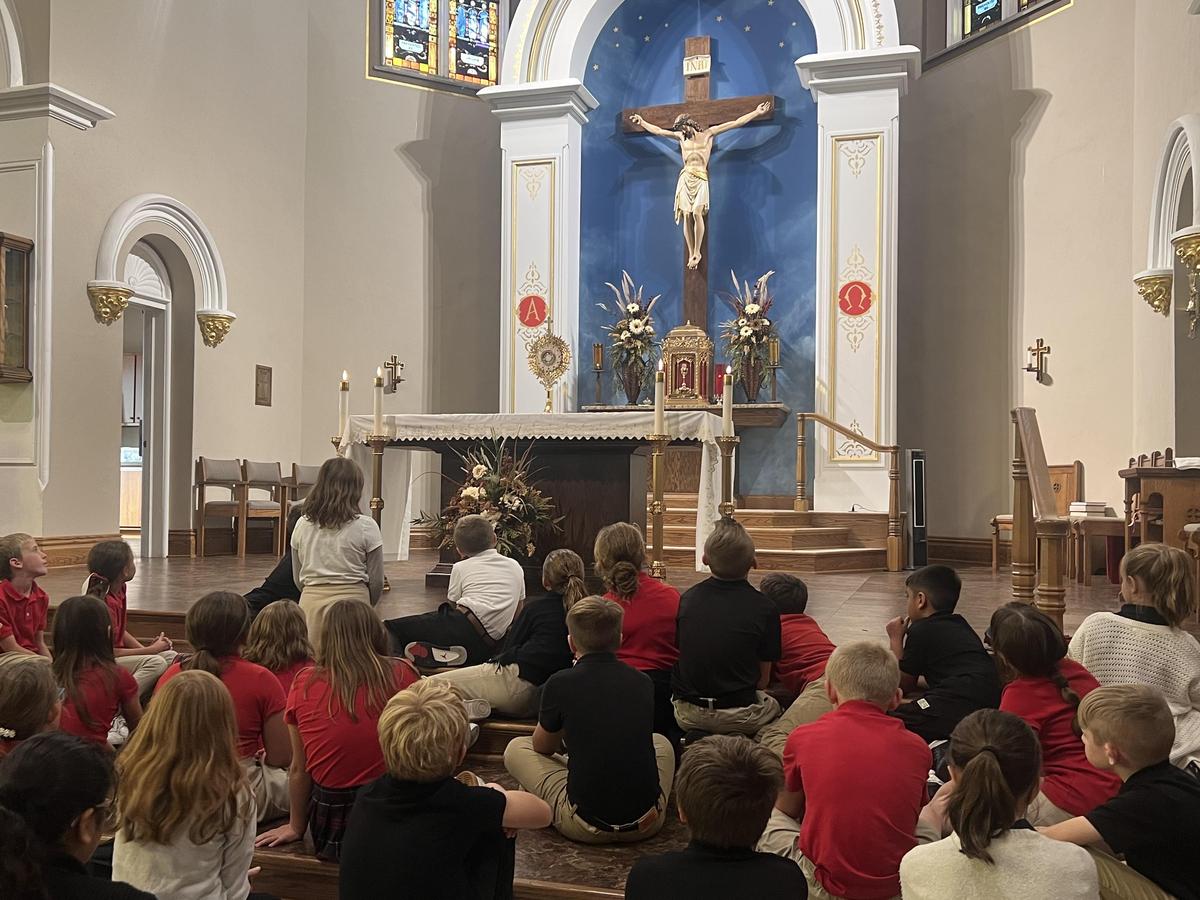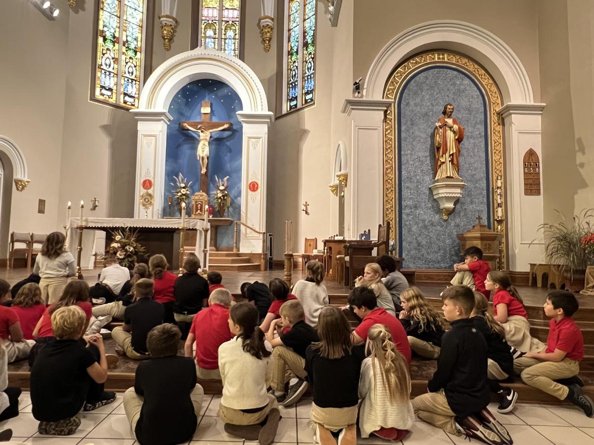 Fourth Grade Students Participate in Adoration The fourth grade students participated in a beautiful time of adoration led by Mrs. Sanders from the church. It was a special opportunity for students to pause, pray, and reflect on their faith together. Published October 27, 2025 Print