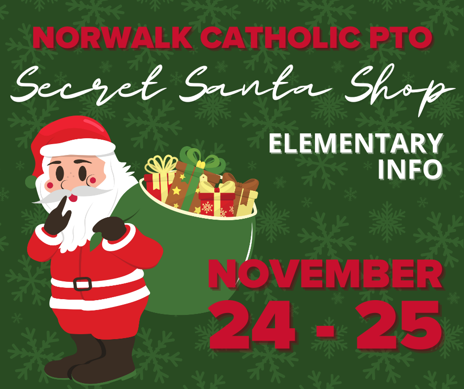 Secret Santa Shop occurs during the school day and teachers take their class to shop at their designated shopping time. Gifts for family members, friends, and pets range from $1 to $10. Please send cash or check with your student in an envelope along with their shopping list. Click here for shopping list.