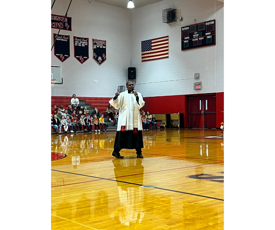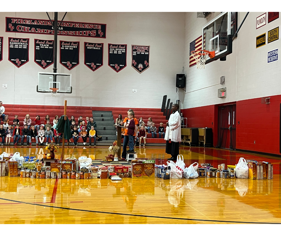 This morning, elementary students had a special Thanksgiving prayer service. Representatives from each grade brought up donated food items to the front that will be delivered to the Norwalk Food Bank this holiday season. May our Flyer Families have a blessed Thanksgiving.