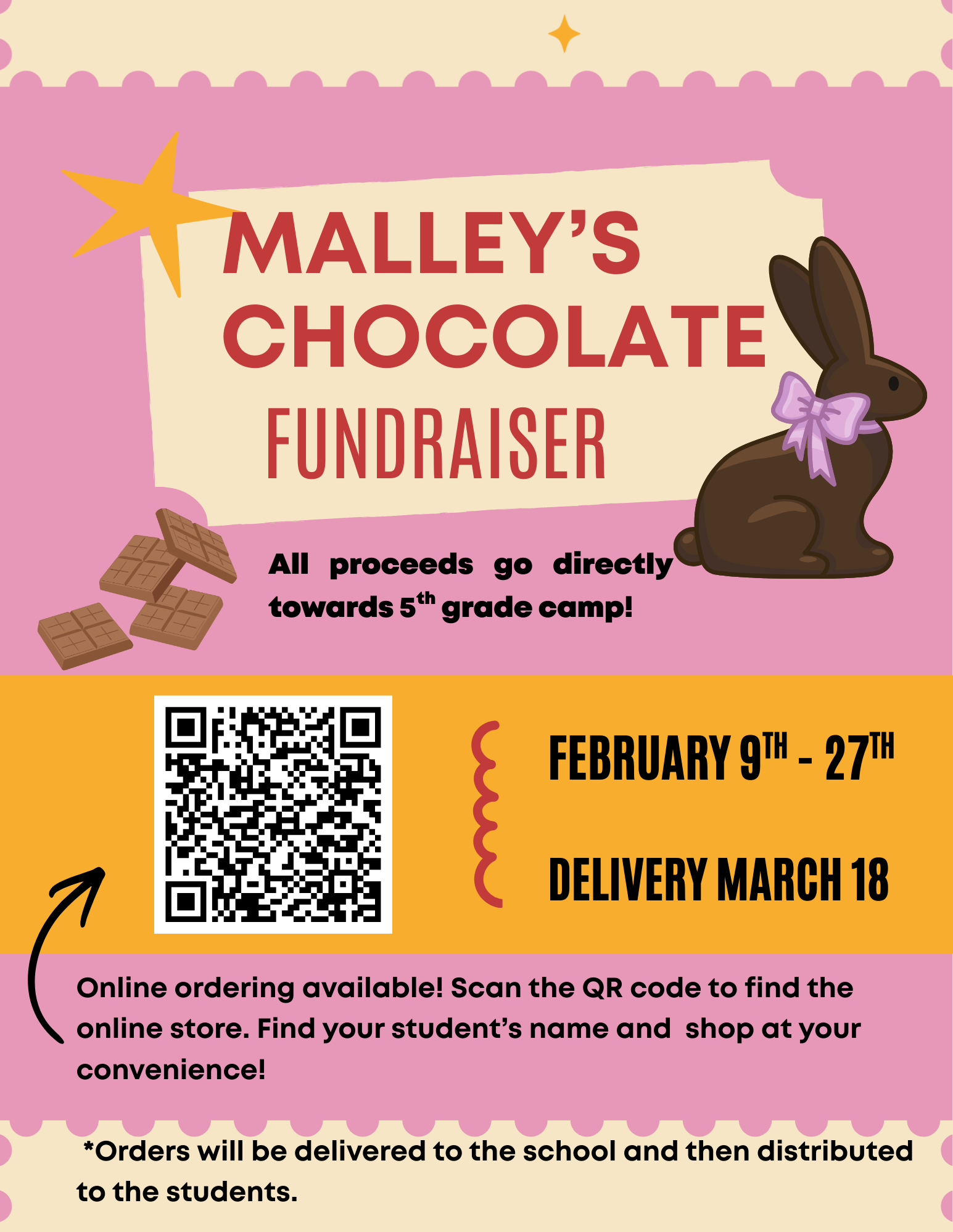 5th Grade is selling Malley's Chocolate to help raise money for their annual 5th grade camp field trip. This special trip is a memorable experience for our students, and your support helps make it possible.