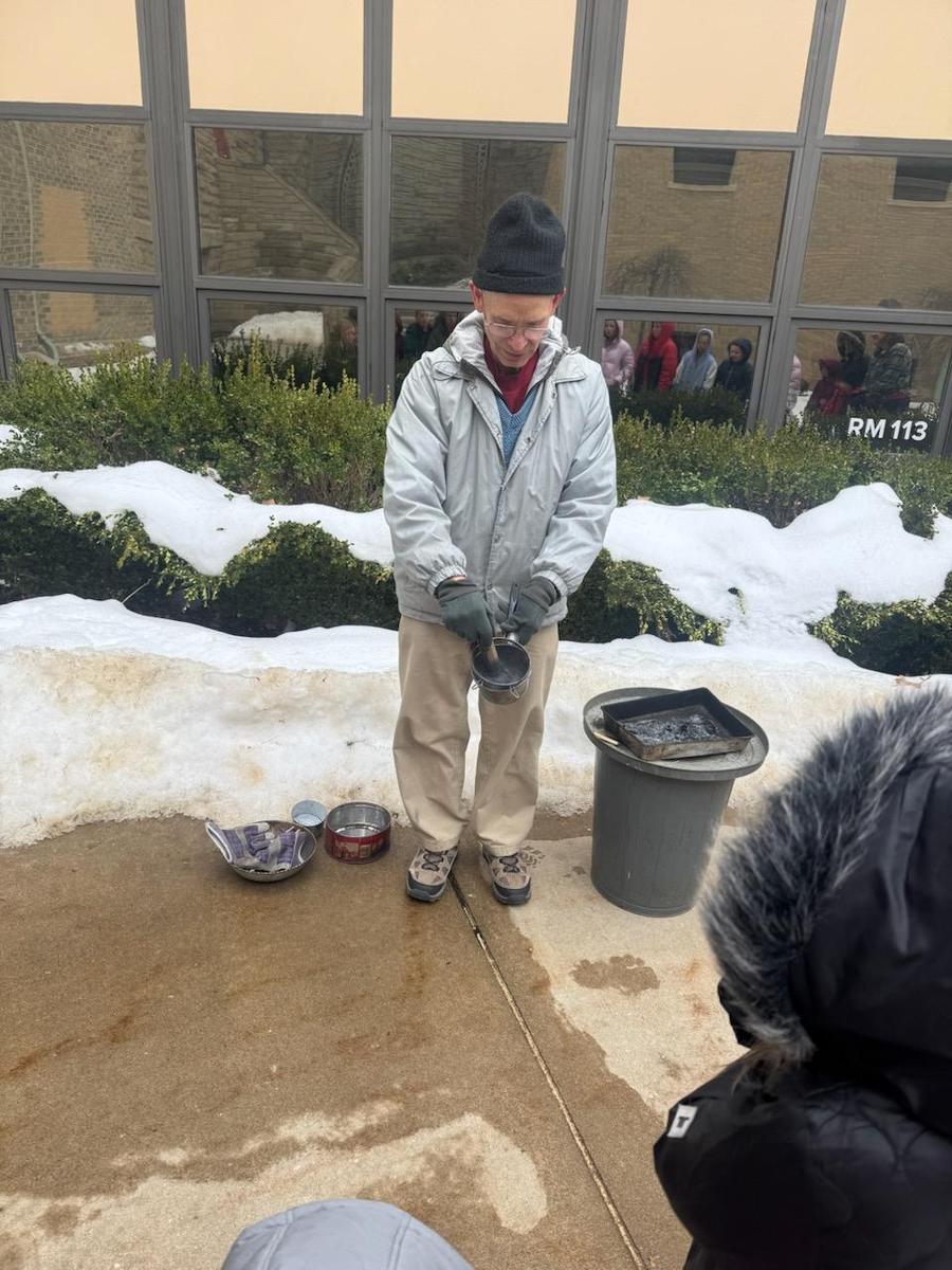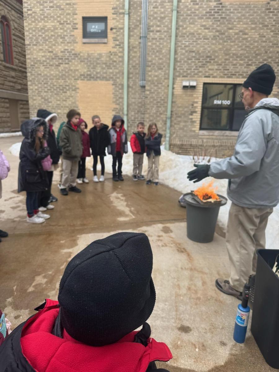 Mr. Jerry Hettle from St. Paul Parish recently visited our second graders to teach them about the meaning of Lenten ashes. Afterward, the students had the special opportunity to assist him in burning the palms that will become the ashes distributed on Ash Wednesday.
