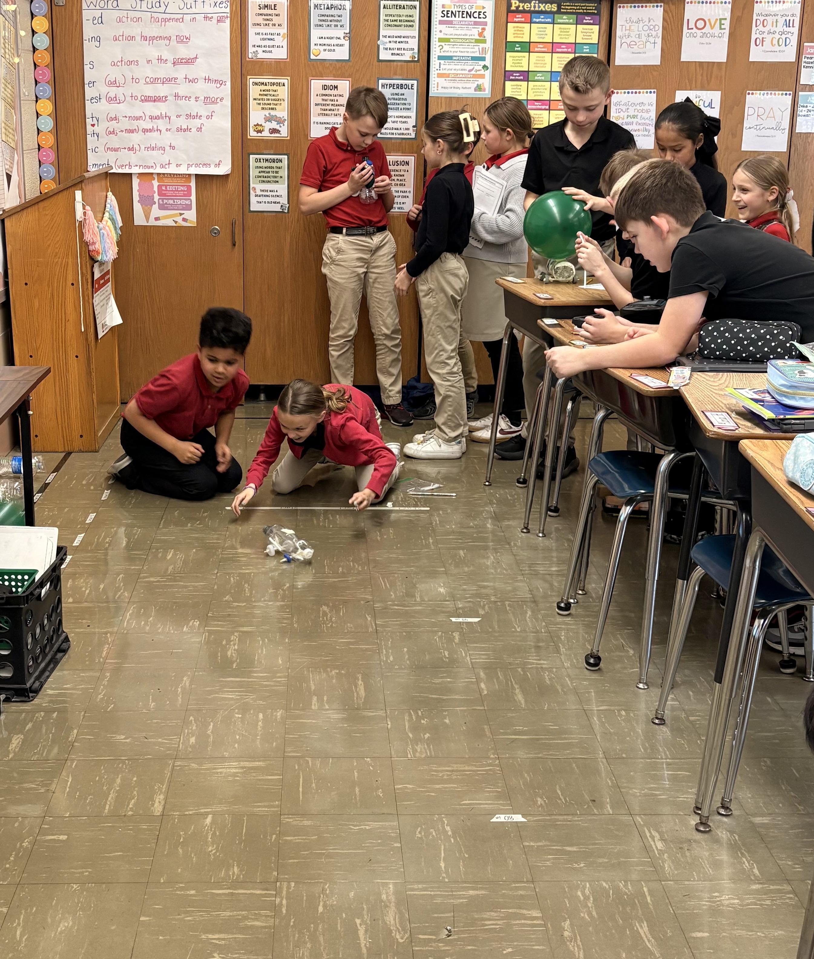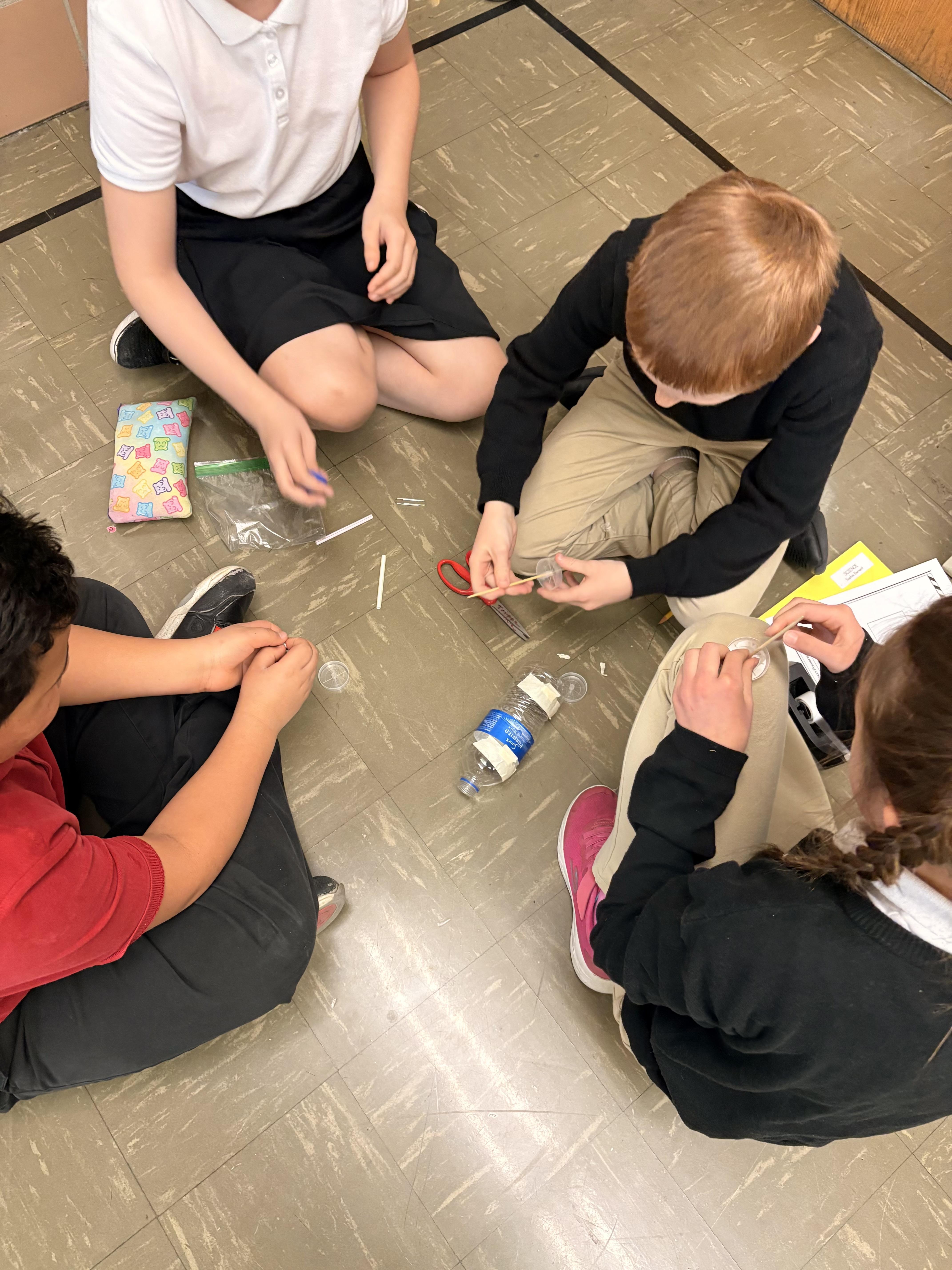 The 4th grade had a blast building and testing balloon-powered cars! As they raced their creations across the floor, they were busy thinking like real scientists. The students discussed how stored (potential) energy in the balloon turns into motion (kinetic energy), and how Newton’s Third Law of Motion comes to life: the air pushes backward, and the car moves forward! There was so much learning, teamwork, and excitement packed into one activity.