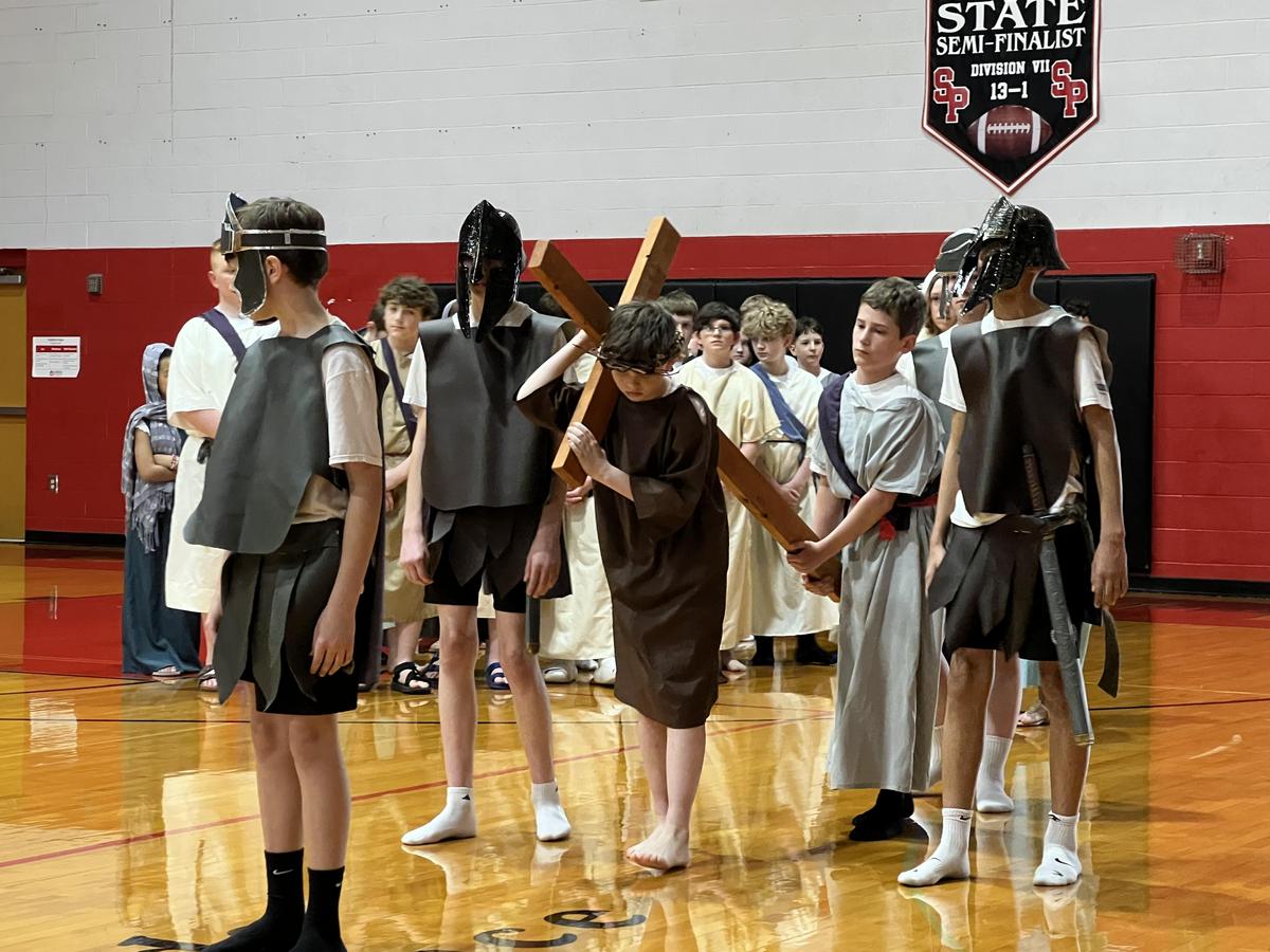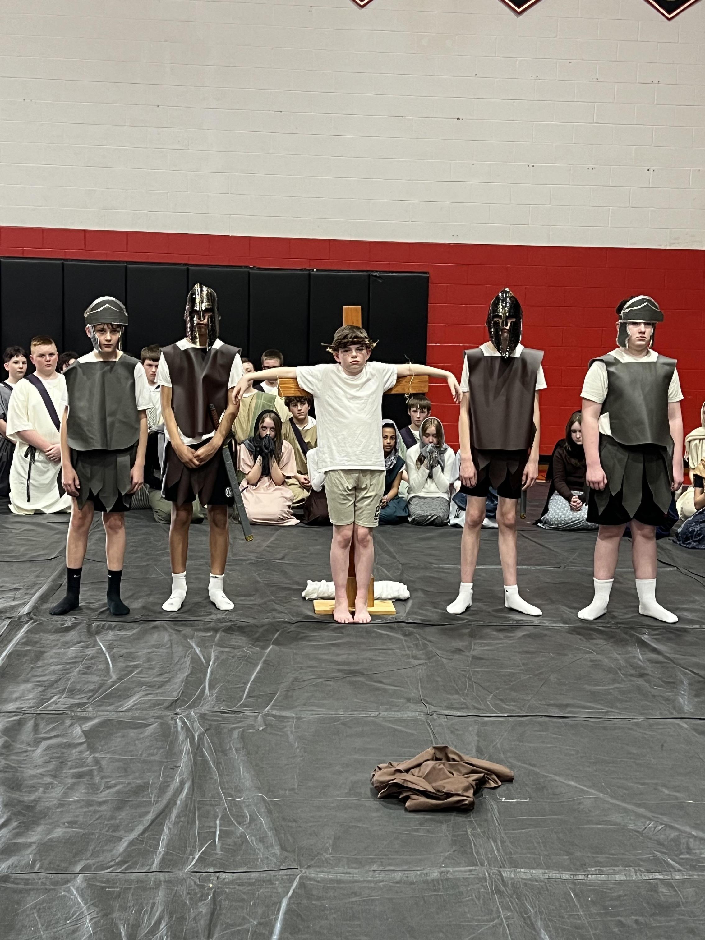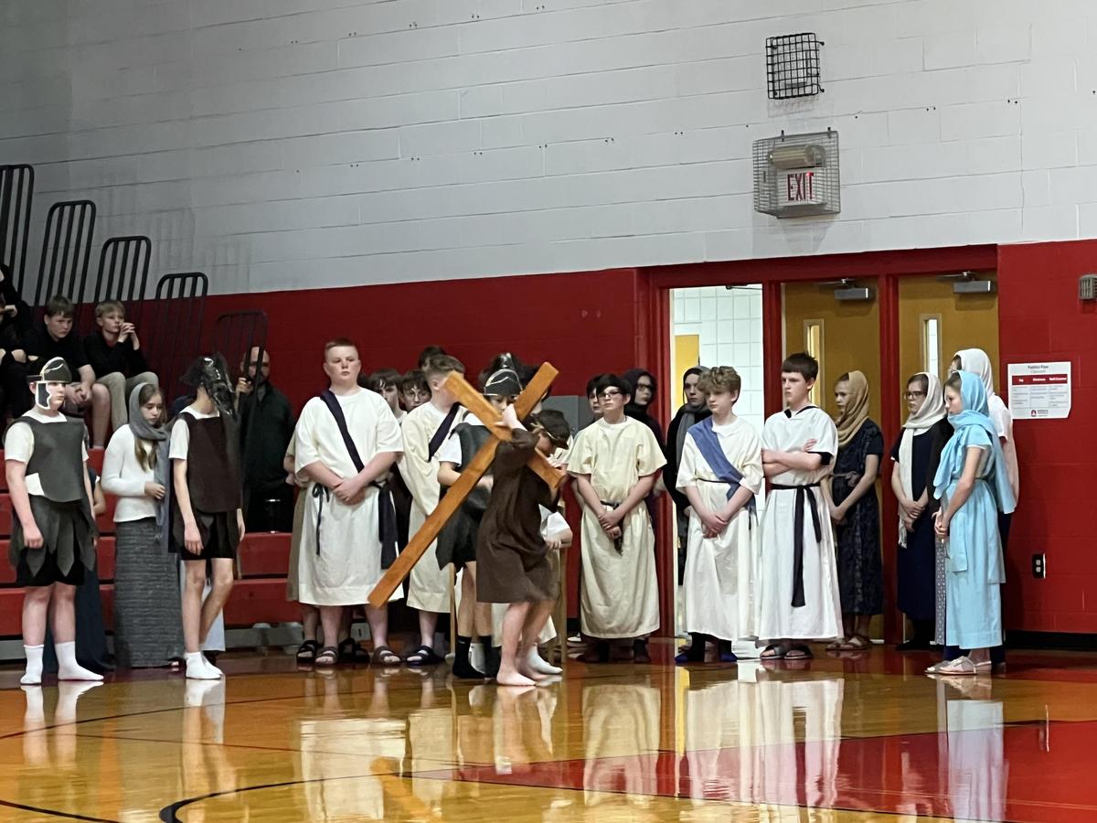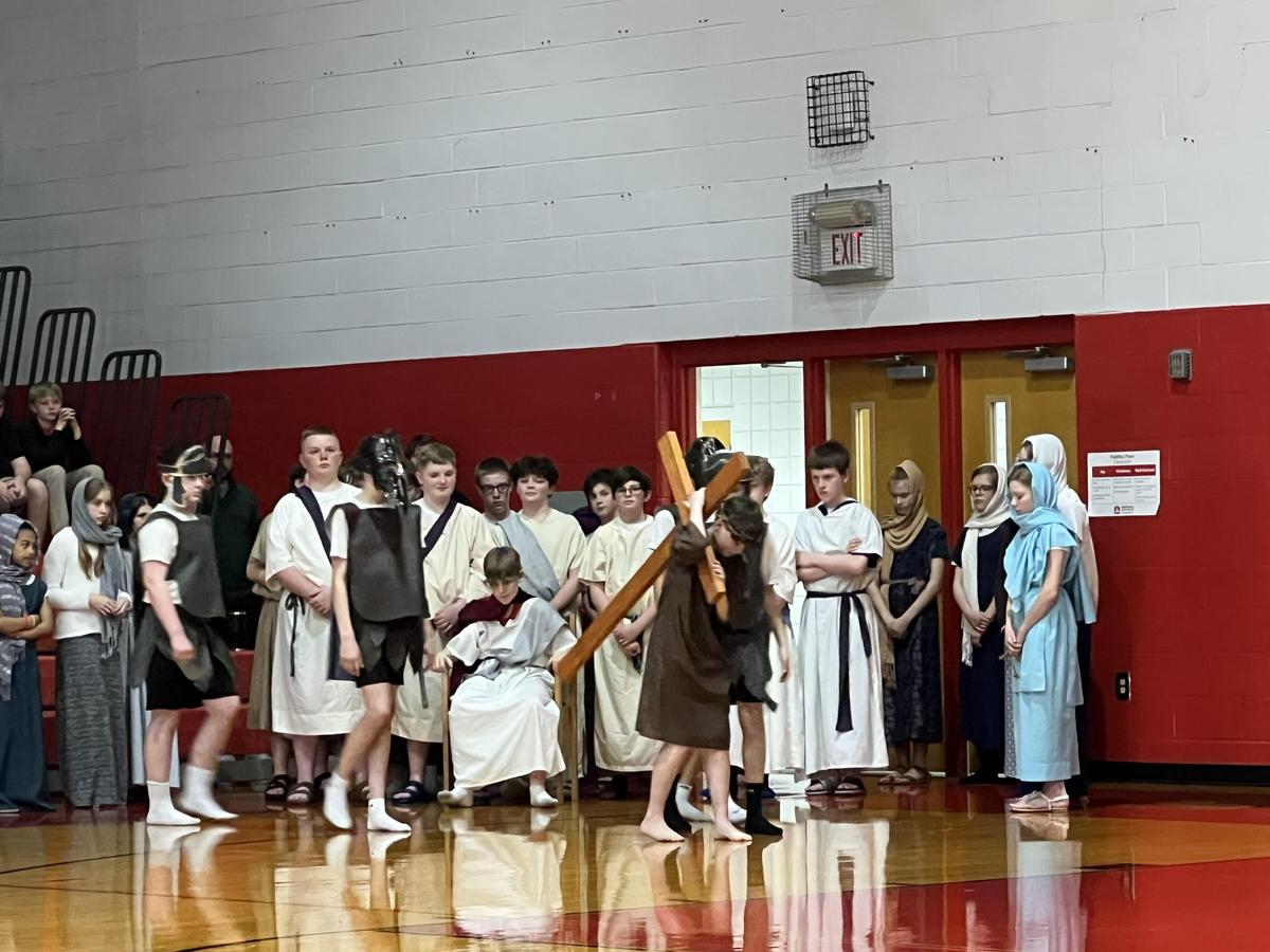 Yesterday, Norwalk Catholic sixth grade students presented the Living Stations of the Cross, sharing the experience with the Early Childhood in the morning and with students in grades 1 through 12 in the afternoon.