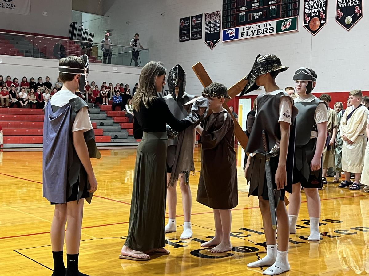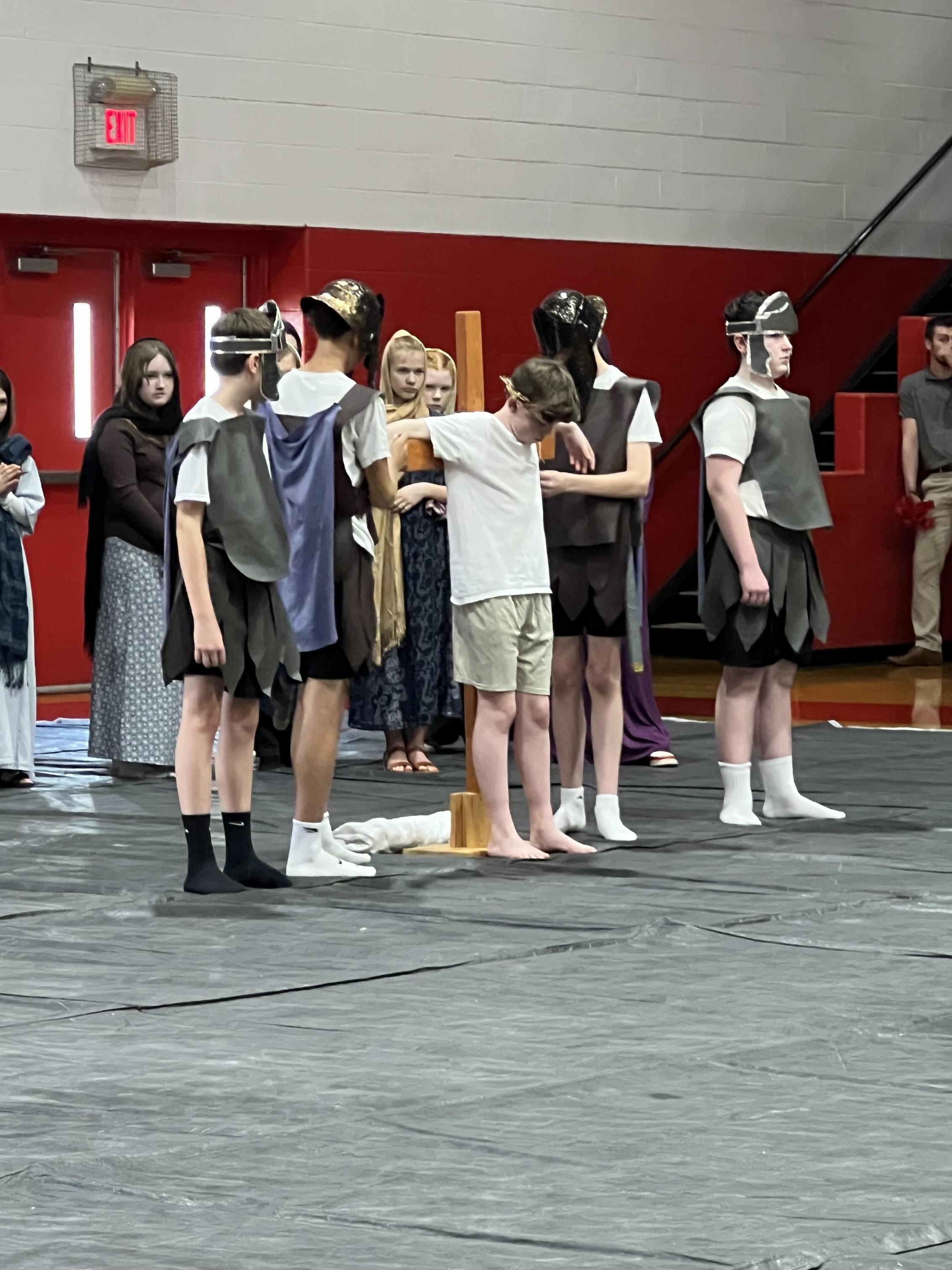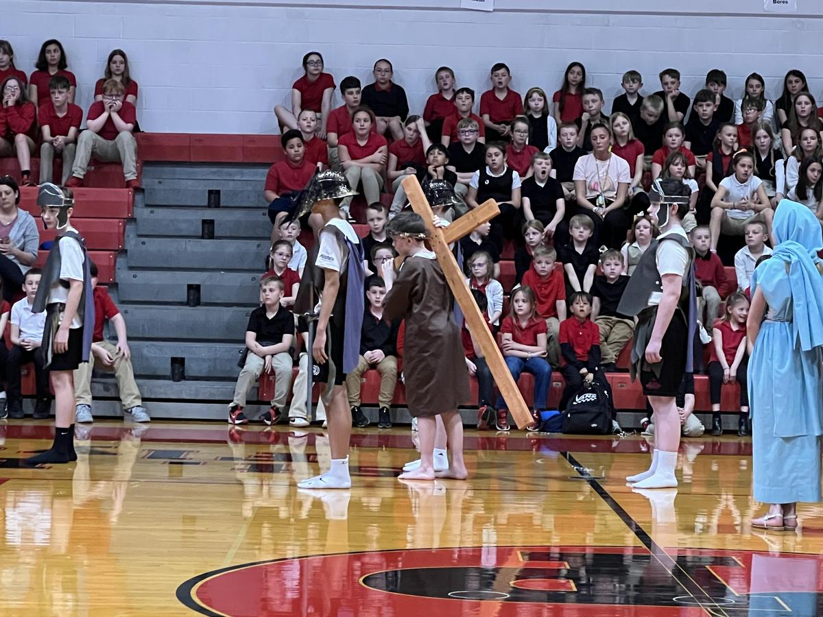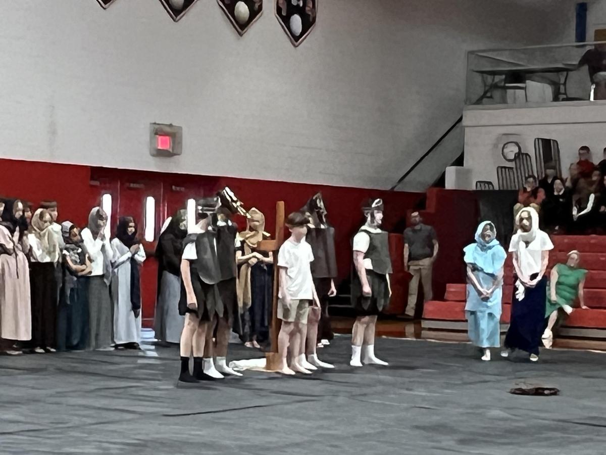 Yesterday, Norwalk Catholic sixth grade students presented the Living Stations of the Cross, sharing the experience with the Early Childhood in the morning and with students in grades 1 through 12 in the afternoon.