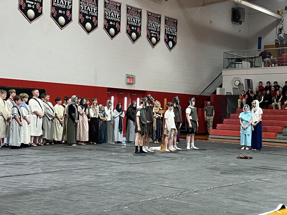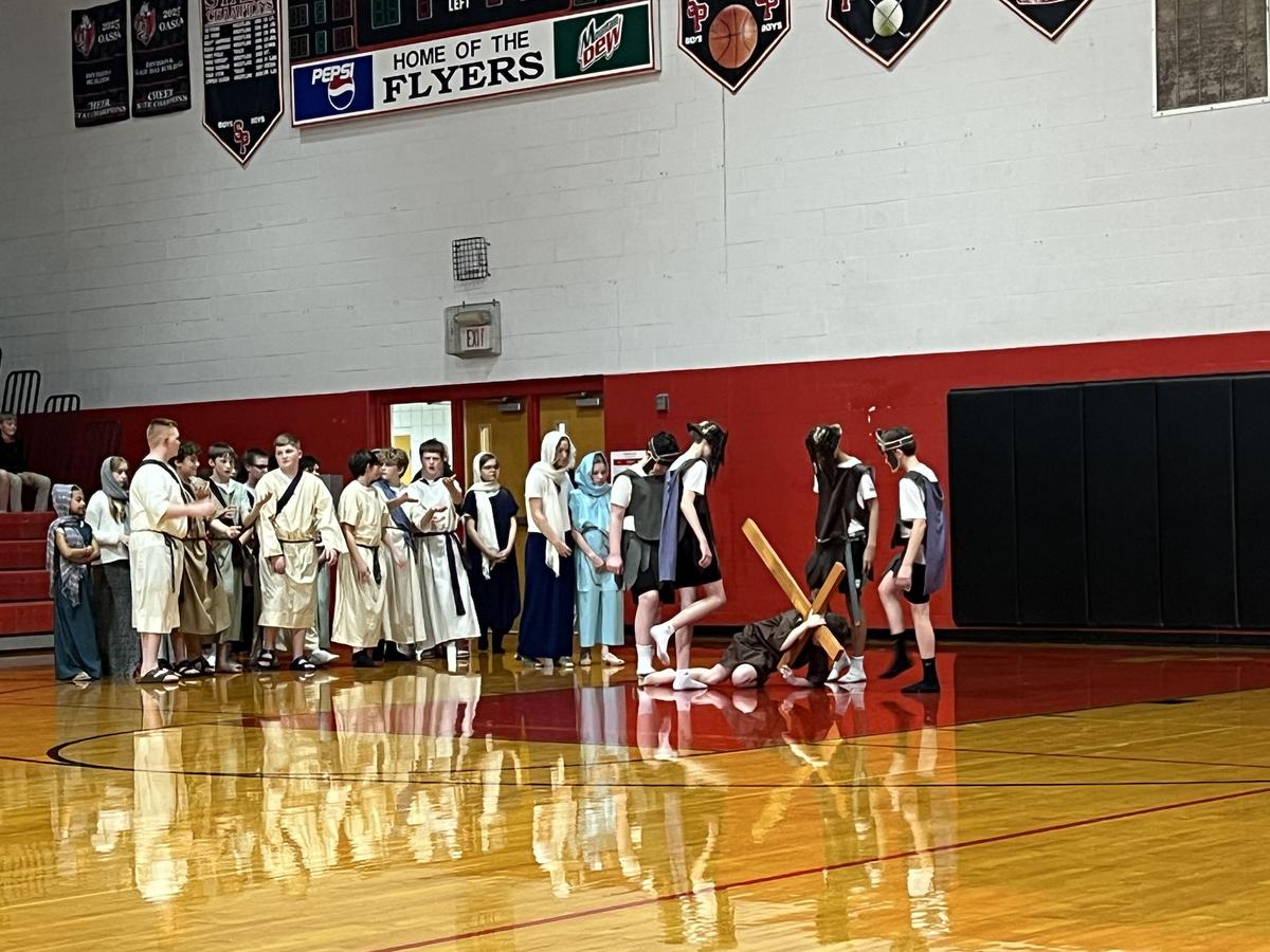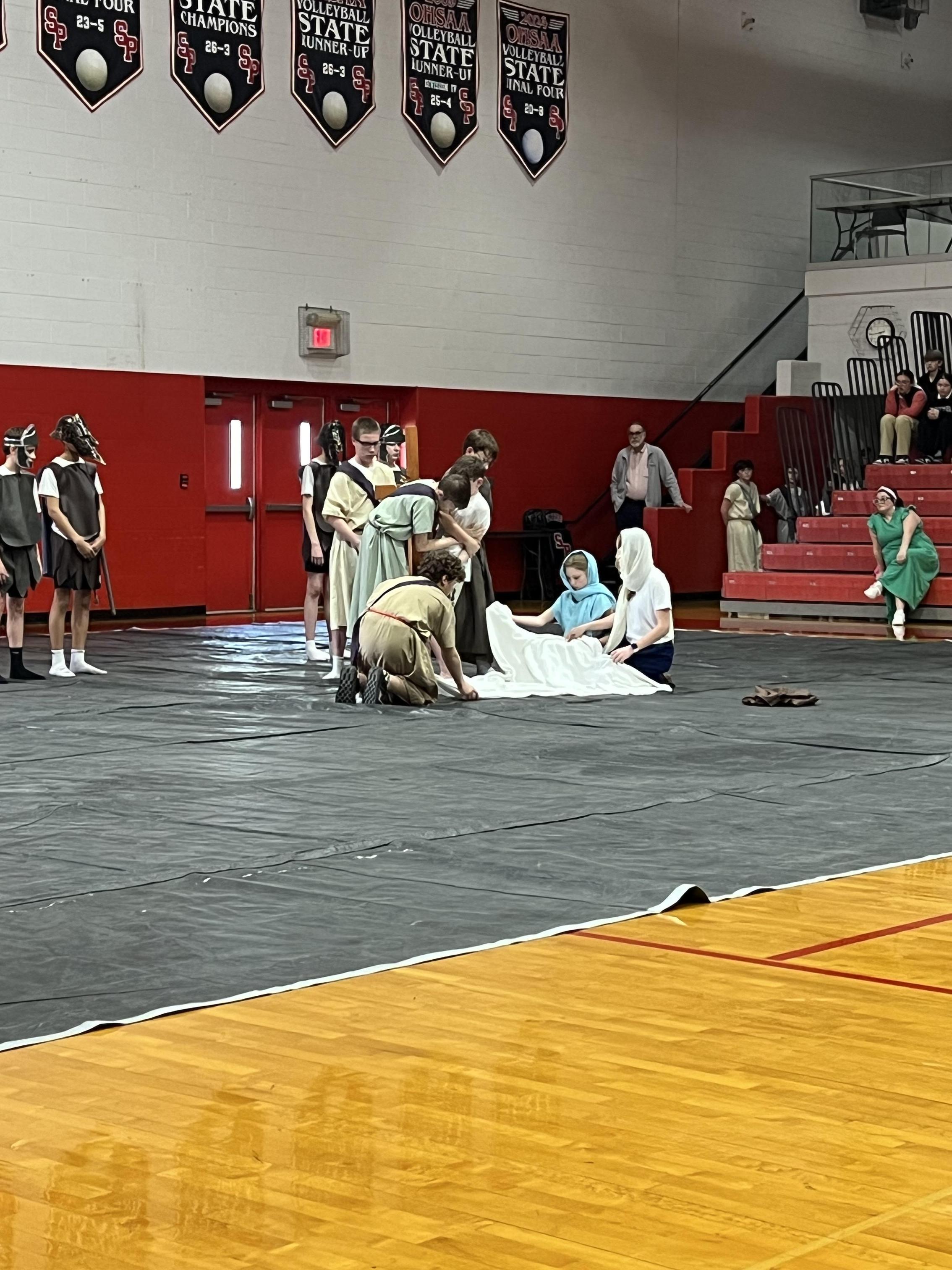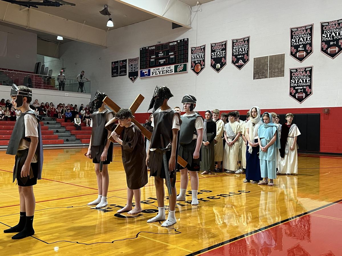 Yesterday, Norwalk Catholic sixth grade students presented the Living Stations of the Cross, sharing the experience with the Early Childhood in the morning and with students in grades 1 through 12 in the afternoon.