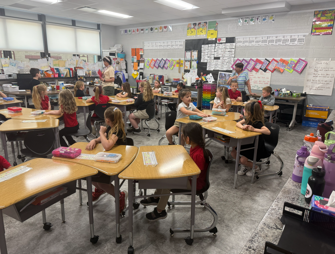 LeapFrog Day for our kindergarten students is an extra special day. They get the chance to experience a day in the life of first graders. Our first grade students guided the kindergarteners through their typical daily routine. The goal of LeapFrog Day was to help ease the transition to first grade by building connections and creating fun, lasting memories. Let's Go Flyers!