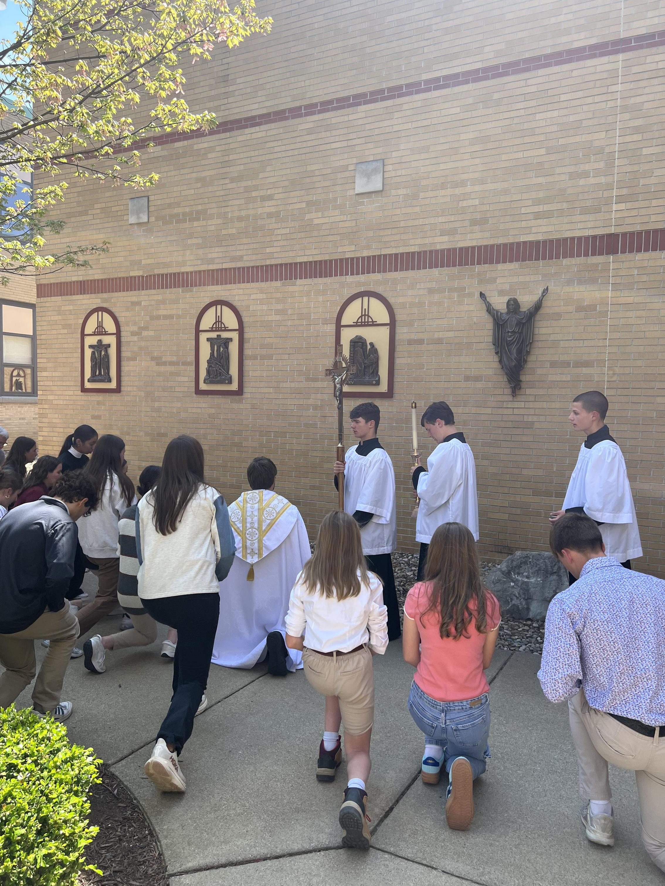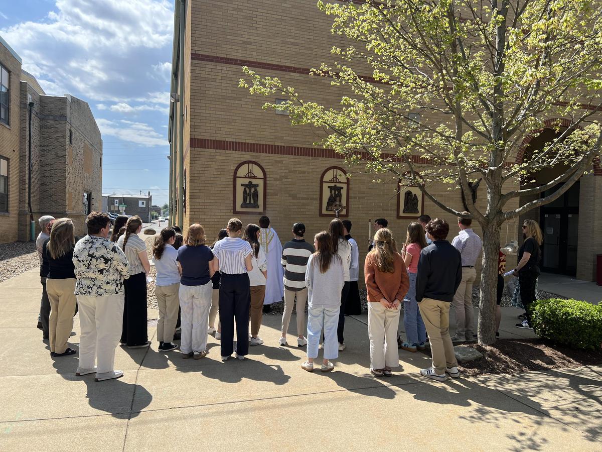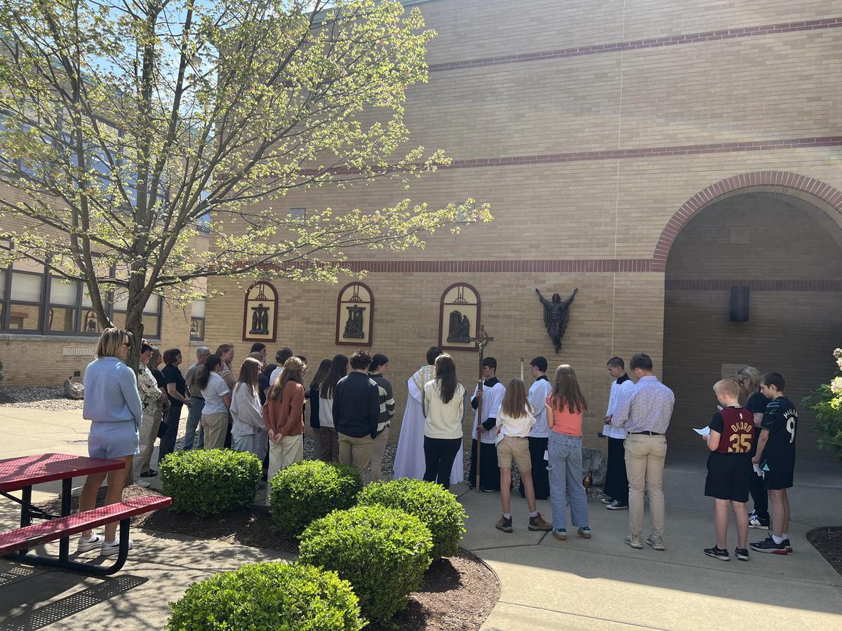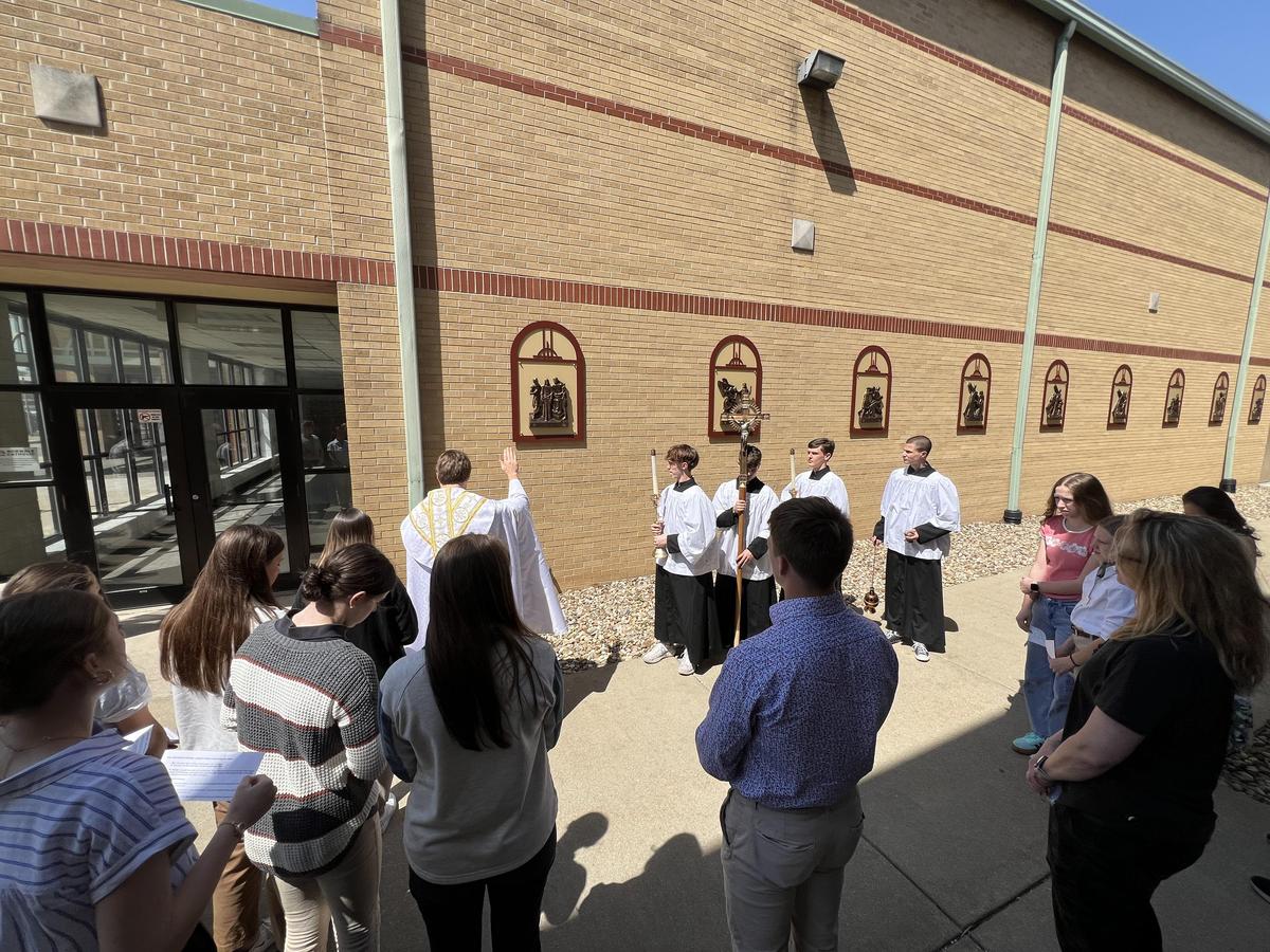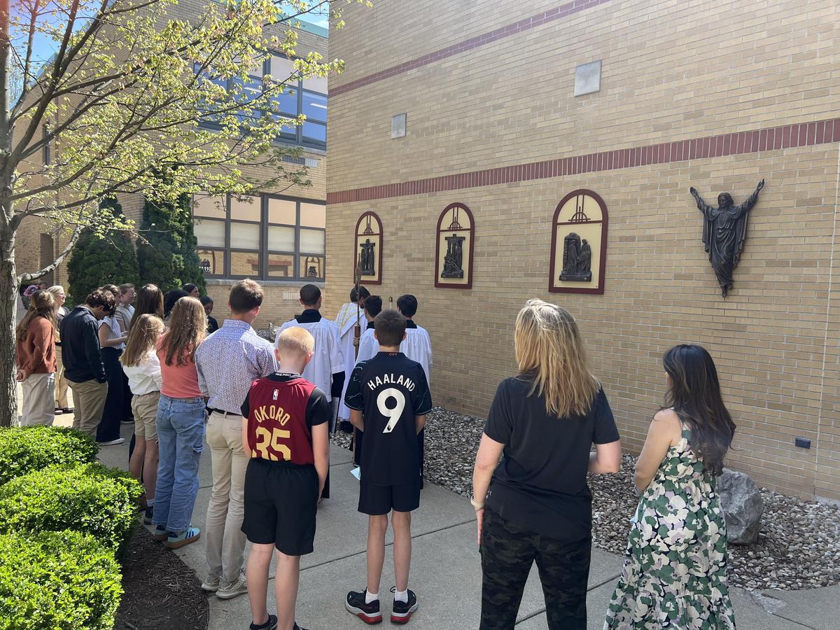 After our high school Mass on Wednesday, Father Travis led a special blessing of our newly installed outdoor Stations of the Cross.