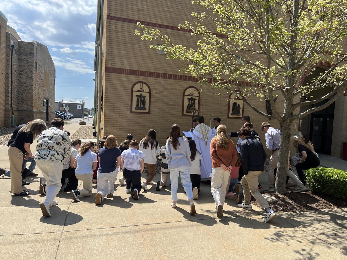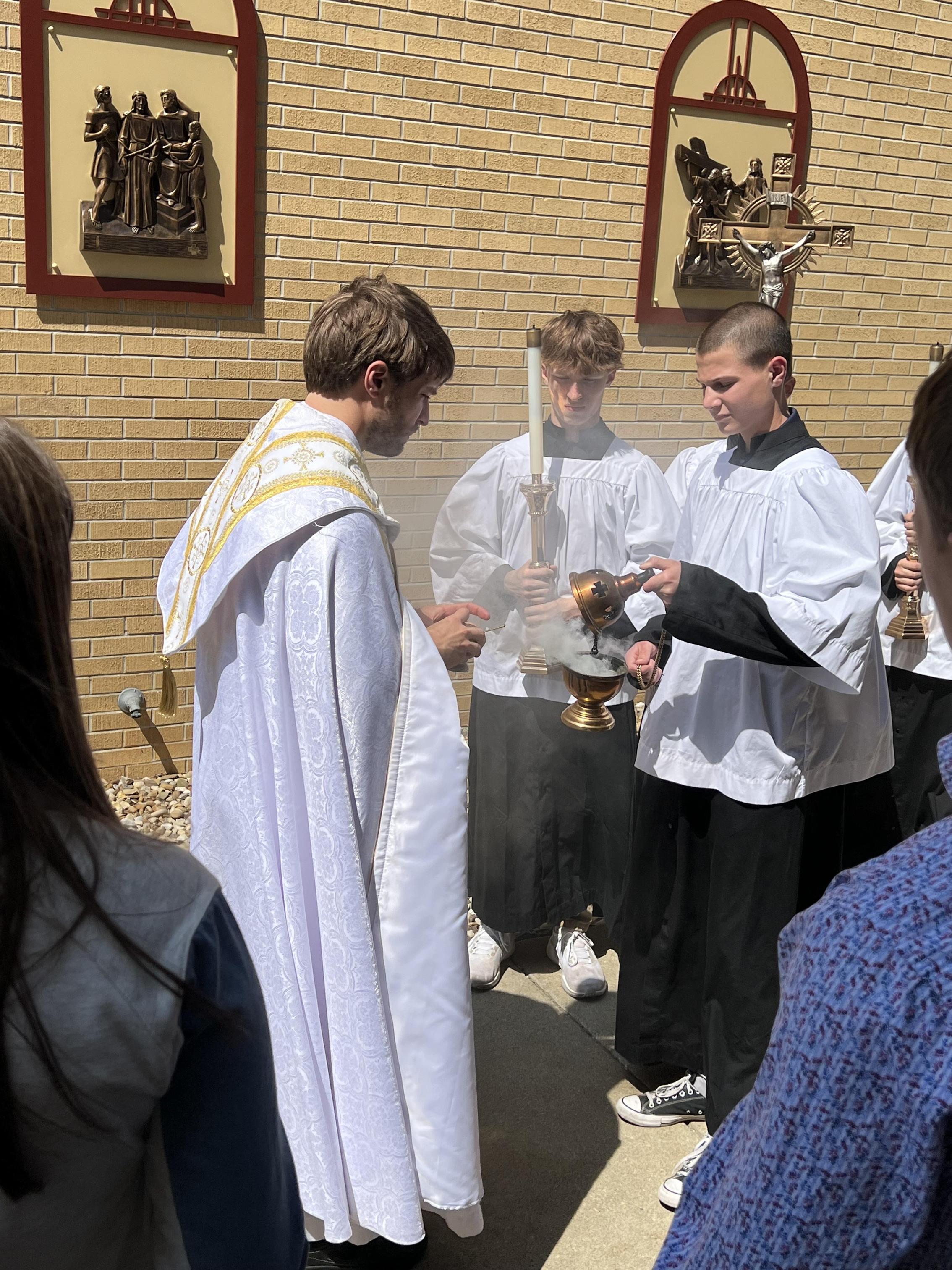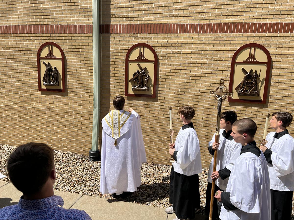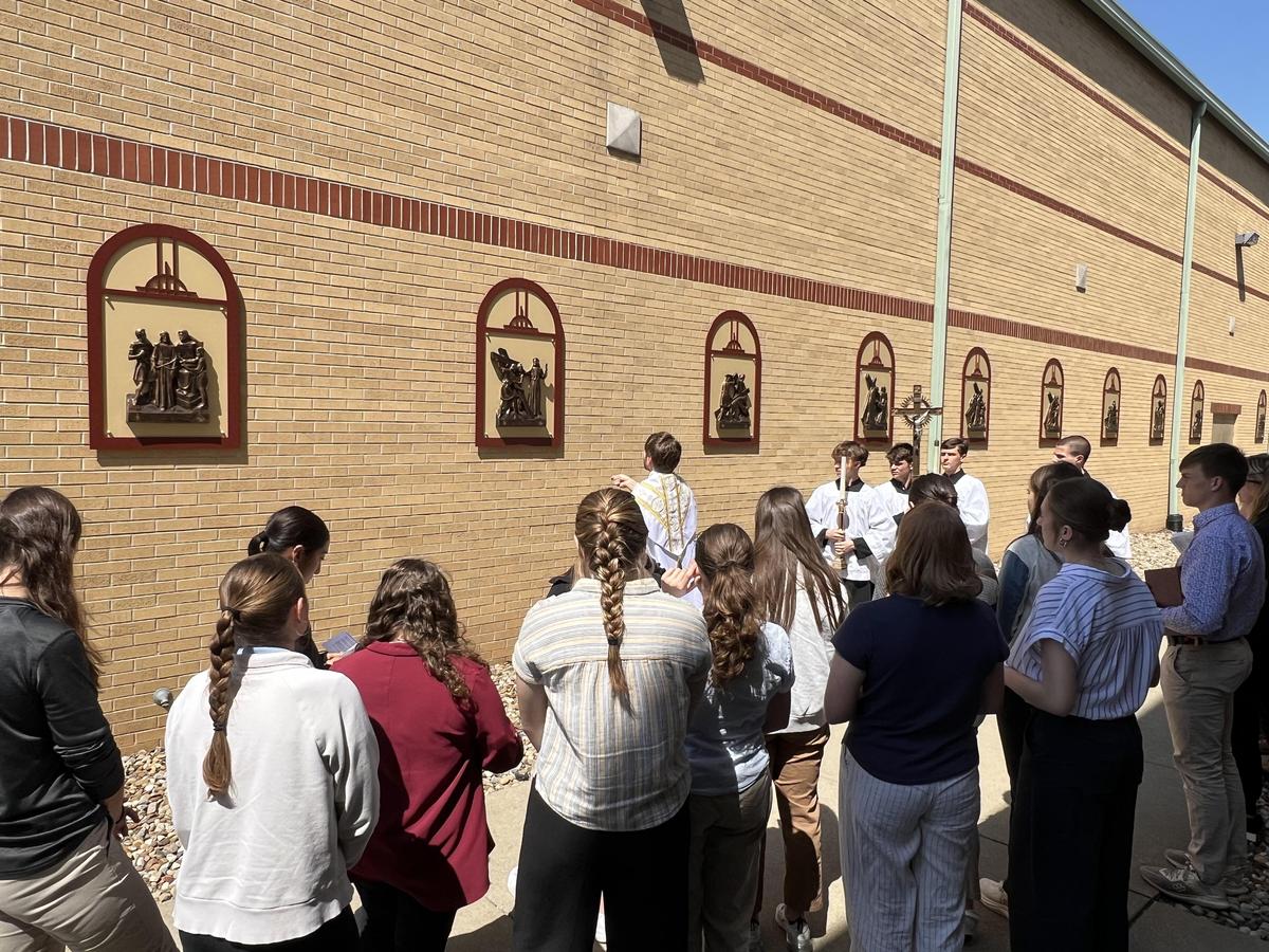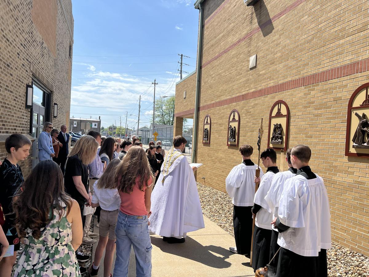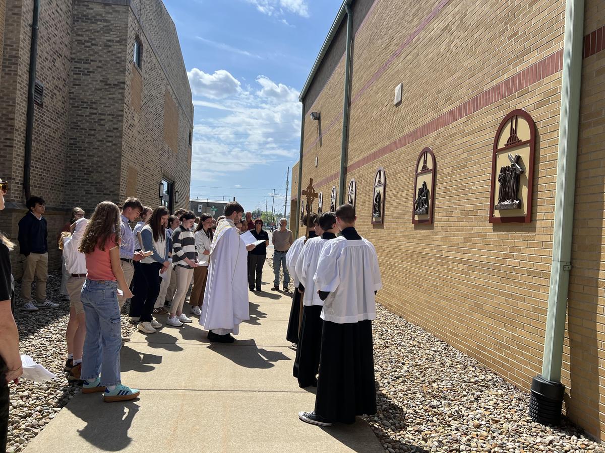 After our high school Mass on Wednesday, Father Travis led a special blessing of our newly installed outdoor Stations of the Cross.